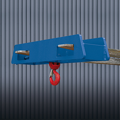 Der Lasthaken findet dort Anwendung, wo die Ladeguterfassung von oben erfolgt und wo keine großen Reichweiten und Höhen nötig sind. Den Lasthaken können Sie mit dem Stapler bedienen. Zum Anbringen von Ketten, Seilen, Schlaufen oder Schlingen verfügt der Lasthaken über einen drehbaren Wirbelhaken.